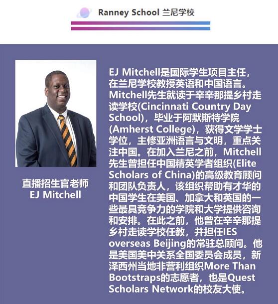 8、兰尼学校非常重视国际生管理,今年专门聘请了国际生招生主任,他在中国生活了11年,毕业于北京外国语大学,中文说的非常棒。