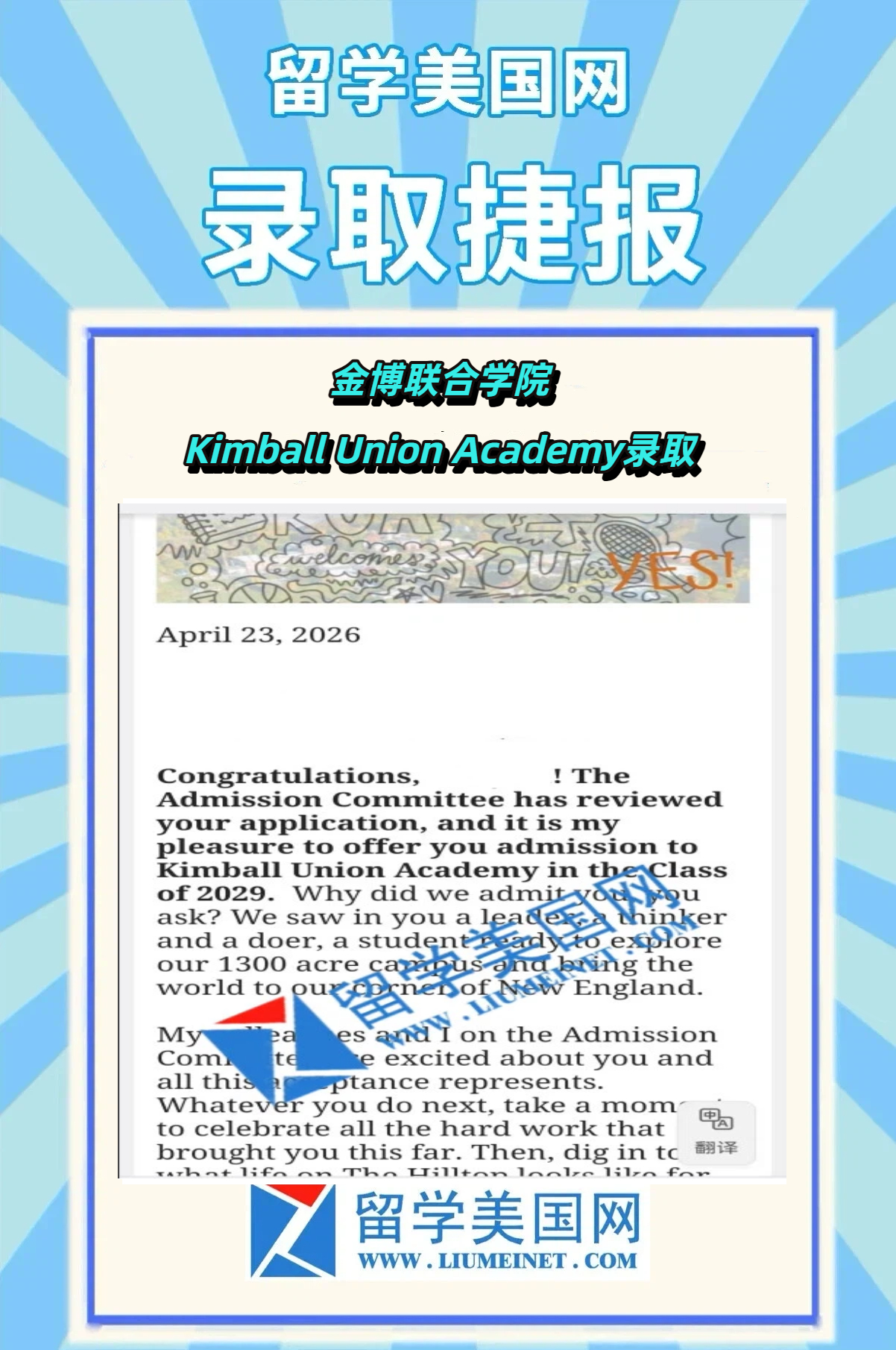 无标化逆袭!迈润肯学员成功补录顶尖寄宿美高Kimball Union Academy