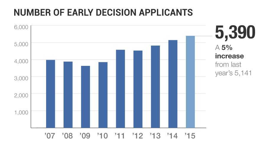宾大(University of Pennsylvania)今年的ED(Early Decision)申请人数比去年上涨了5%,达到创纪录的5390人。