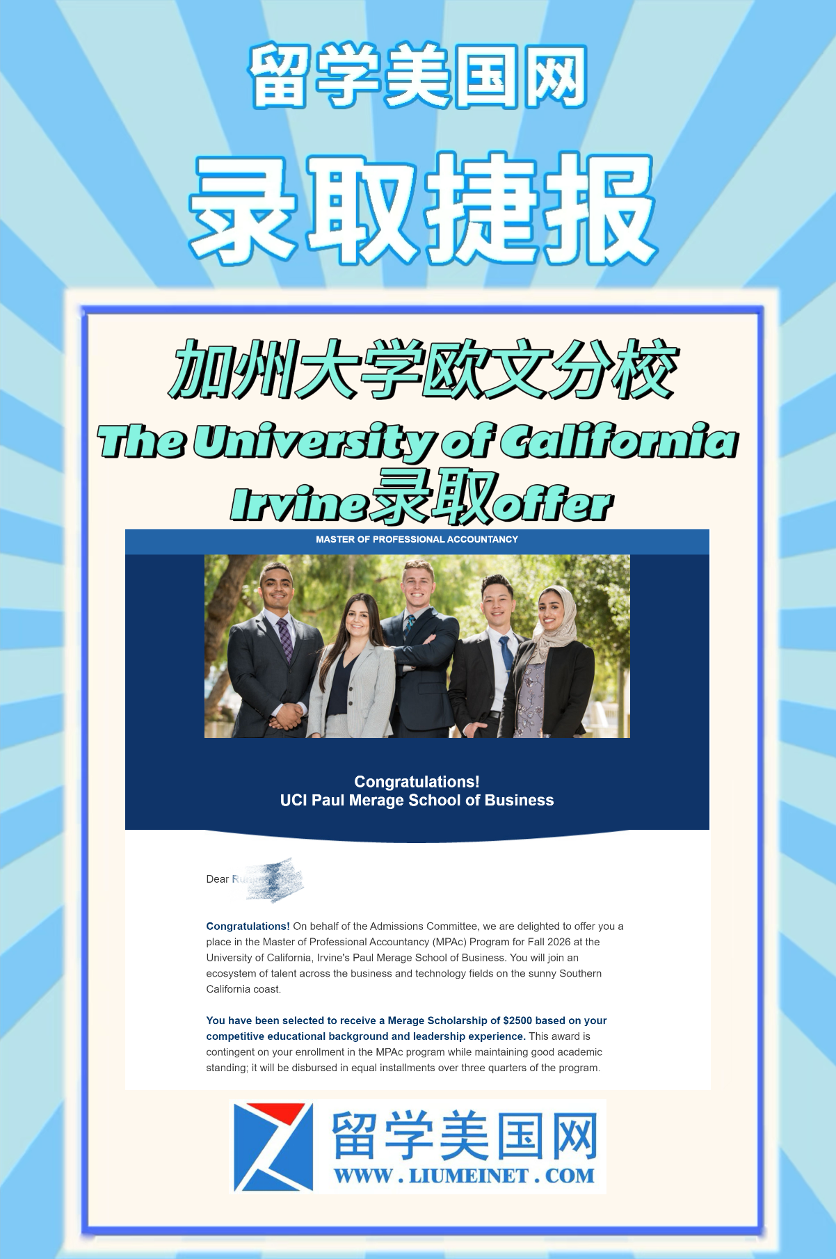 录取捷报,恭喜迈润肯S同学斩获UCI录取~