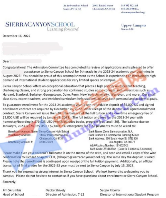 12月6日,加州洛杉矶顶尖私校塞拉峡谷中学面试会圆满落幕!我们学生参加了此次的面试会,更值得一提的是,我们迈润肯学员变现非常亮眼,学生凭借出色的面试表现得到了招生官的肯定。 一场成功的面试会,离不开会前充分的准备。 为了让学子们在招生官面前展现最佳状态,迈润肯的培训老师提前许久便开启“备战模式”,从学校调研到面试辅导,每一步都力求极致。 培训的第一步,是帮学生 “吃透” 目标学校。老师逐一梳理参会美高的核心信息:从课程设置(IB、AP、双学分课程的具体分布),到课外活动、特色俱乐部(如机器人社团、数学竞赛团队),再到学校独有的特色项目(海洋科学实地考察、STEAM 融合课程),都整理成清晰的资料清单,引导学生理清思路,找到自身与学校的“适配点”。 在此基础上,迈润肯专业的面试辅导老师结合学生的特长与学校的特色项目,为每位学生定制“个性化面试逻辑”—— 不是生硬背诵模板,而是挖掘真实经历,梳理有深度的表达框架。 塞拉峡谷学校介绍: 塞拉峡谷中学是一所位于美国加利福尼亚州洛杉矶的精英独立私立学校,提供K-12年级教育,成立于1978年,无宗教背景,是西部院校联盟成员之一,致力于为学生打造实现其最佳智力、道德和体育前景的环境。 该校是一所优质大学学术预备学校,以其优质的学术和体育项目而闻名,尤其是在篮球方面有着显著的表现,吸引了众多好莱坞明星、NBA球星的子女就读,例如詹姆斯的儿子布朗尼、韦德的儿子扎伊尔,还有好莱坞明星小甜甜布兰妮,威尔史密斯的孩子都在该校上学。 石老师曾走访考察过该校,石老师访校感受: Sierra Canyon位于加州洛杉矶Chatsworth,田园般优美安全的校园和周边环境,紧邻比佛利山庄、环球影城、好莱坞和著名的威尼斯海滩。 学校环境 塞拉峡谷中学有两个校区,石老师走访的是高中校区,校园面积不大,但感觉很温馨,是一所非常值得推荐的中学,女生有两个寄宿公寓,男生只有一个寄宿公寓。大部分学生只能住寄宿家庭。 艺术项目 学校每年春季学校都会有大型艺术表演,艺术类课程极其丰富;众多名人及好莱坞明星子女在该校就读。 体育项目 学校体育项目非常强,曾有12个体育项目获得州冠军,2个项目获得全国冠军。优势体育项目有球、网球、游泳和田径等,该校的学生在视频游戏项目曾获得州冠军。 特色项目 Debby热情地带石老师参观了校园,介绍学校的特色项目是动漫、建筑学、生物科技、计算机编程、工程、机器人、游戏制作、经济学和舞台设计等。 升学指导 学校从10年级大学升学顾问老师开始介入升学指导,塞拉峡谷中学目前国际学生有60人,中国学生大约50人左右,20人住学校宿舍,其他人住寄宿家庭。 升学走向 近几年国际学生毕业去向非常棒,有去哈佛大学、普林斯顿大学、斯坦福大学、加州理工大学和哥大等知名大学,这是我所见过国际生最好的毕业去向。 学校优势: 1、学术水平优异:学校39%的教师都拥有硕士或博士学位,为学校的教学质量提供了坚实保障。2024年AP考试中87%学生获得3分及以上好成绩,开设AP和荣誉课程近60门,数学竞赛,辩论队多次获奖。 2、艺术项目多样化:为学生提供多达50门艺术课程,创纪录数量的学生作品入选每年一度的全美高中电影节,丰富的表演和视觉艺术课程,鼓励学生挑战自我,探索艺术的深度和广度。 3、国际学生关怀和支持:从7年级开始,学校为每个学生都分配了各自的顾问老师,在学习、生活上帮助学生取得更大的进步。学校设有专门负责大学升学的辅导顾问,他们熟悉学校每个学生的状况,以便为他们将来的升学设计最佳方案。 4、体育竟技强校:拥有23支校队,橄榄球,足球,篮球,排球尤其突出。学校的体育项目已成为加利福尼亚州和美国首屈一指的高中体育项目之一,15年内获得12次州冠军和19次CIF-SS冠军并进入另外11次CIF-SS决赛,且在多个比赛中取得优异的成就。 5、丰富的社团组织:校内开设多达57个俱乐部和组织,以培养他们的兴趣和个人能力。数学团队连续三年排名第一并被比赛组织者认可为加利福尼亚州的“高得分学校”;演讲和辩论团队有一个成功的赛季三名学生在州一级进行资格赛和比赛;学生举办了第八届Sierra Canyon电影节,录制了6部SC学生电影等。 6、优秀的升学走向:100%升学率,毕业生被哈佛,斯坦福,加州大学伯克利分校,加州大学洛杉矶分校等录取。 特色项目: 1、高级计算机编码:JavaScript、基本游戏设计和两门AP计算机科学课程。 2、应用经济学:社会科学选修课,旨在为每个学生提供必要的商业、金融和自己创业的管理技作。 3、建筑:3年的课程让学生接触透视图、按比例绘制示意图和建筑模型。 4、竞赛数学:为选修课,学生通过学习高级课程为数学竞赛做准备:概率和计数技术,算术和不同的基础算术,图论,数论,高级代数,复杂的几何问题解决,数学证明,以及许多其他主题。 5、工程学:提供一学期的初级课程和为期一年的荣誉课程。学生接触到工程及其在解决现实世界问题方面的许多应用。主题包括机械、电气、机器人技术、航空航天、化学、数学、环境材料和土木工程。 6、法医学:生物学、解剖学、化学和物理学在科学收集和分析中的应用刑事案件中的物证。这包括对多种材料的分析,包括血液、纤维、子弹和指纹。 7、多媒体体育营销:学生参与营销体育项目的各个方面,包括拍摄