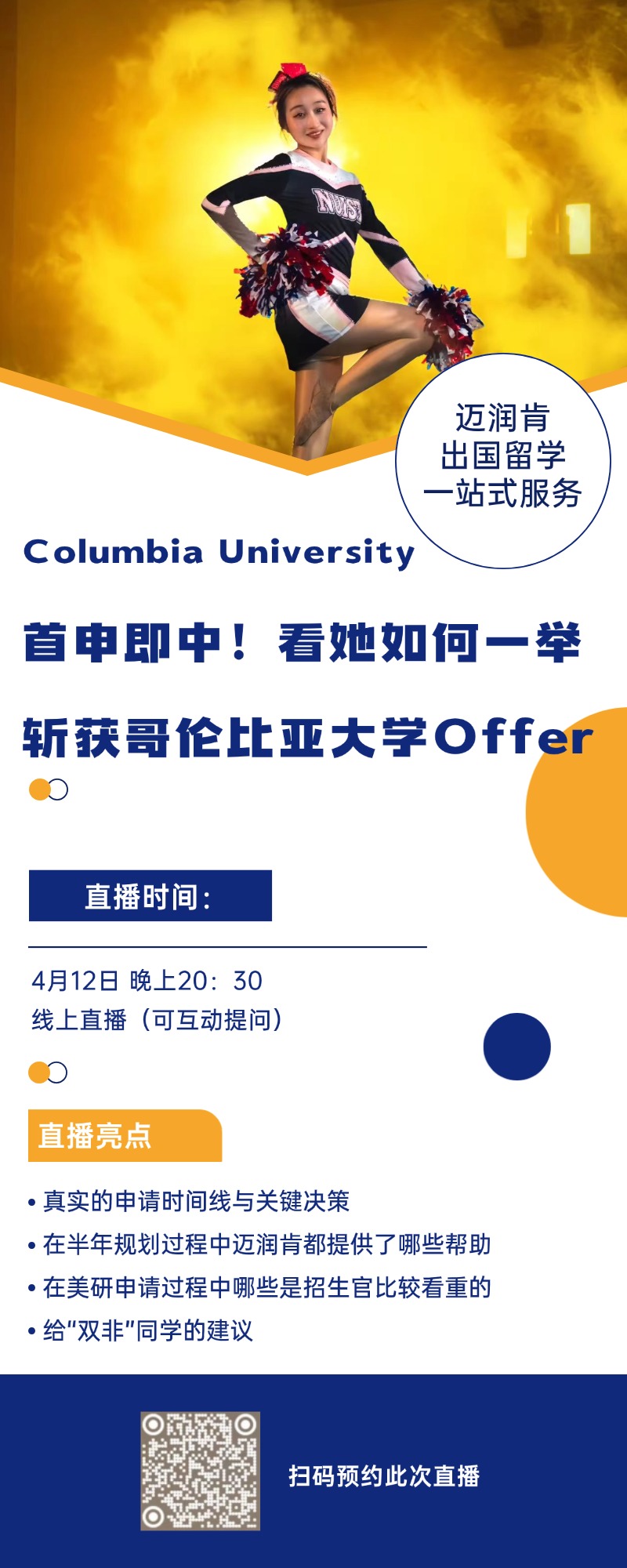 4月12日,迈润肯留学S同学将亲述她的哥大申请之路——从普通背景到名校录取,每一个细节都将与你分享。