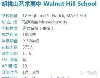 胡桃山艺术高中 Walnut Hill School 位于美国波士顿近郊,占地45英亩。它建立于1893年,是美国最古老的艺术高中之一,也是美国少数几个临近大都会的寄宿学校之一。胡桃山音乐学校为学生提供独特的艺术和学术训练。学生在术科方面可以在芭蕾、创意写作、音乐、戏剧与视觉艺术中选择一门主修;同时也必须参与严格的学科课程。学校提供学生多样化、富有人文气息而崇尚品德的学习环境,致力于教育来自世界各地,有天赋、又造诣并且品学兼优的年轻艺术家。留学美国网有多名学生在胡桃山就读,总监石老师也亲赴学校考察,并与招生官建立了紧密的联系。 学校考察情况: http://t.cn/Rql8sa2